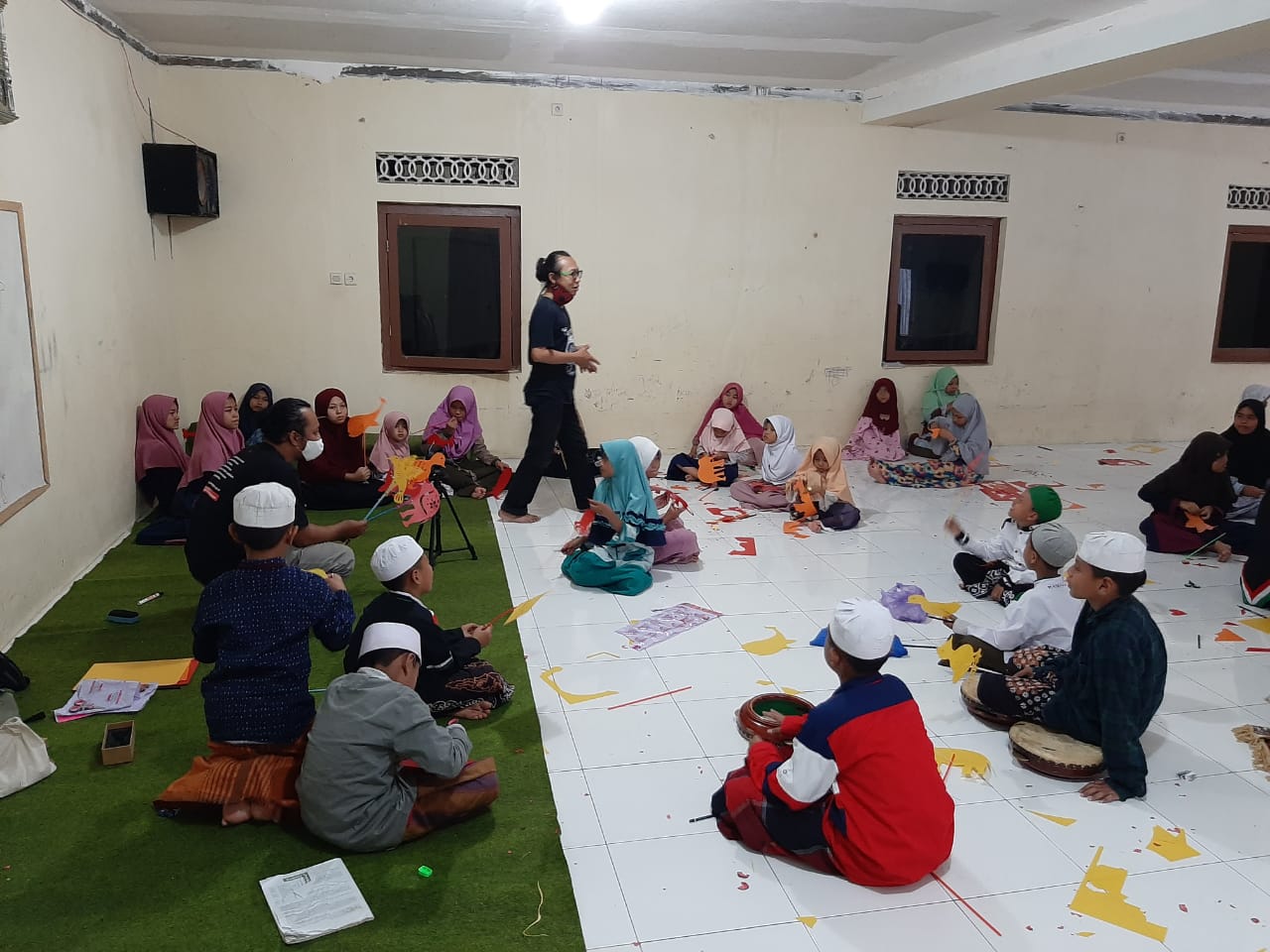 Ada pemandangan dan aktivitas berbeda di Pondok Pesantren dan Panti Sosial Sirrul Asror, Semarang. Ya, sejumlah 40 santri asyik dan berkreasi mengikuti pelatihan mendongeng melalui sarana wayang, belum lama ini. Saat pandemi mengurangi mobilitas, para santri termotivasi dan berlatih kreativitas. Kreasi dan imajinasi dimulai dan terlihat ketika mereka mempersiapkan cutter, pensil, dan plastik warna-warni. Kakak Umam dan Kak Vikki memandu dan mengajari mereka membuat wayang dengan gambar tumbuhan dan hewan seperti bunga, gajah, dan ikan. Anak-anak berusia 6-12 tahun dari pondok pesantren itu, kemudian praktik dan berkolaborasi dengan Wayang Tenda, untuk memerankan karakteristik wayang. Meskipun kegiatan ini baru pertama kali, anak-anak terlihat antusias dan tidak canggung. Mereka bisa mendongeng dan memerankan karakteristik wayang secara serius dan baik. Anak-anak juga dilatih membuat puisi dan lagu sederhana.